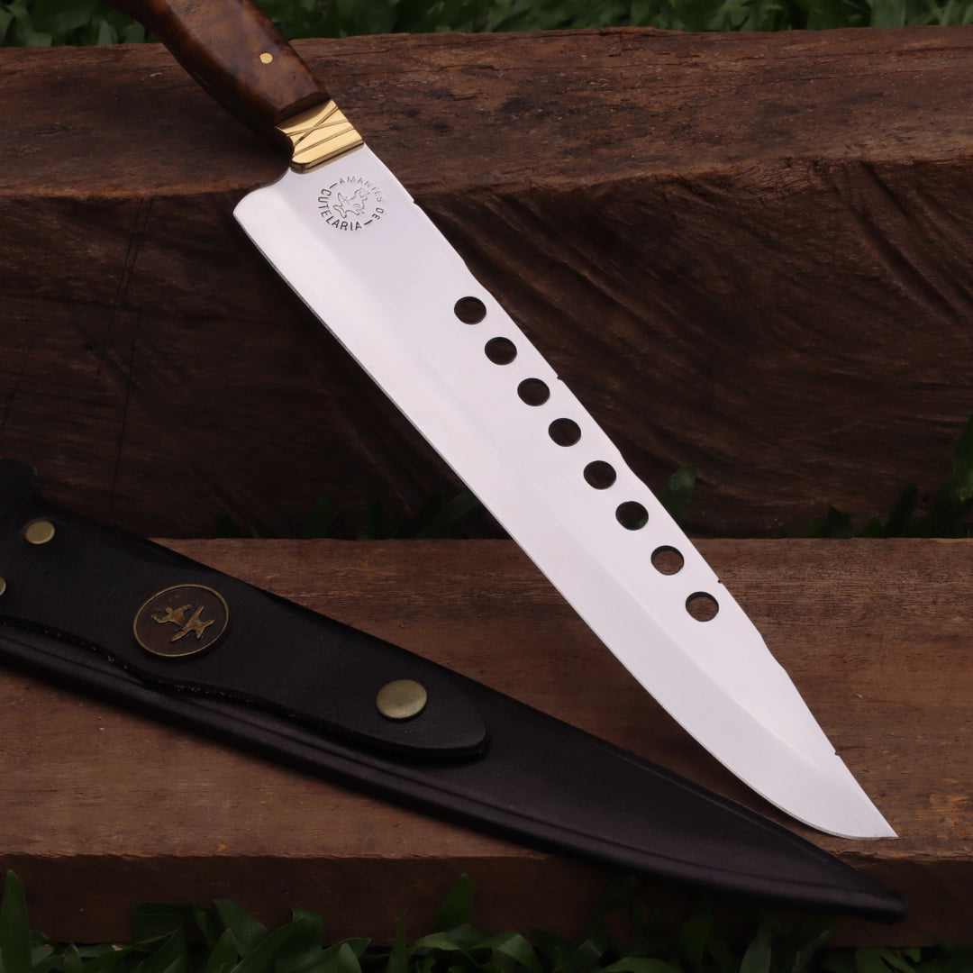 Faca Churrasco Artesanal Personalizada Furada | Aço Inox 10"